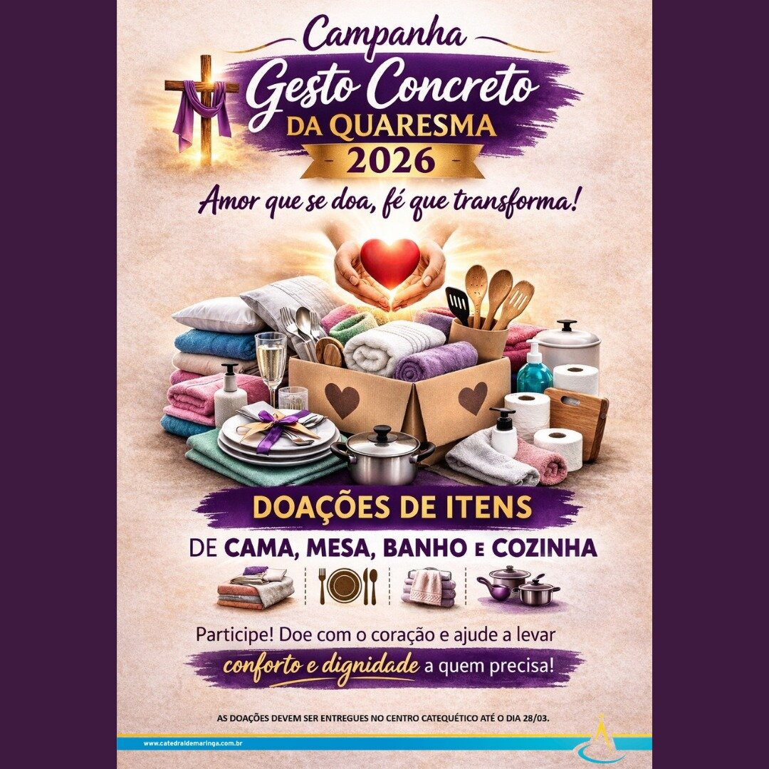 A nossa Catequese está com a Campanha de Doações de utensílios de cozinha, roupas de cama, mesa e banho, que serão destinados à famílias carentes – contamos com a colabora